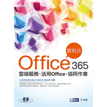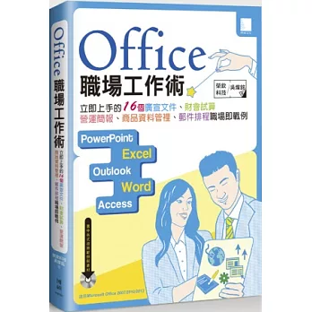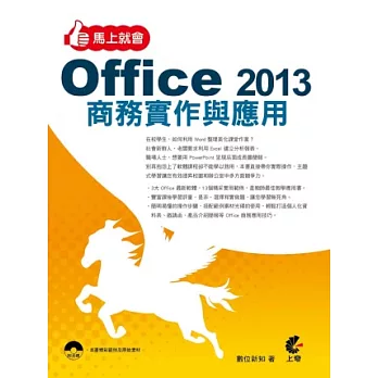 詳細資料ISBN:9789864340231 規格:平裝 / 496頁 / 17 X 23 CM / 普通級/ 單色印刷 / 初版 出版地:台灣 內容簡介 專業文件表單+靈活數字分析+完美簡報呈現 一本讓您快速變身全方位職場達人的商務實戰祕笈! 本書深入淺出的說明OFFICE辦公室軟體在不同主題下所使用的方法與技巧,輔以大量商務範例來實作說明,可以快速套用以解決辦公室或日常生活的問題,並且透過專業文件表單、靈活的數字分析能力搭配完美的簡報呈現,讓您快速變身全方位職場達人! ‧完整透過WORD、EXCEL、POWERPOINT三大職場必用的辦公軟體來學習OFFICE 2013新功能。 ‧豐富多樣的文件表單、財會報表、完美簡報,徹底了解OFFICE在企業中實際應用的層面。 ‧精選16個商務範例:如合約建立、業務績效、資產負債、市場分析、策略聯盟合作計畫等精彩實例詳解。 ‧詳盡的步驟圖文解說,內容由淺入深、循序漸進,兼顧學習與實用成效,快速變成職場達人。 附件內容 ■書中商務範例與素材 ■附贈多用途精美圖庫4000張 |